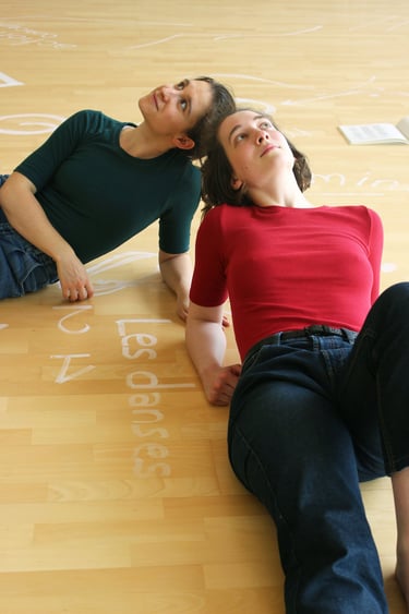 La compagnie attache une importance au processus et aux temps de recherche par le corps. Des étapes de travail que Rose et Laurine souhaitent partager avec le plus grand nombre, au travers d’ateliers pensés comme des bulles créatrices nourrissant leurs créations, et comme une porte d’entrée dans leur spectacle Entre les lignes.