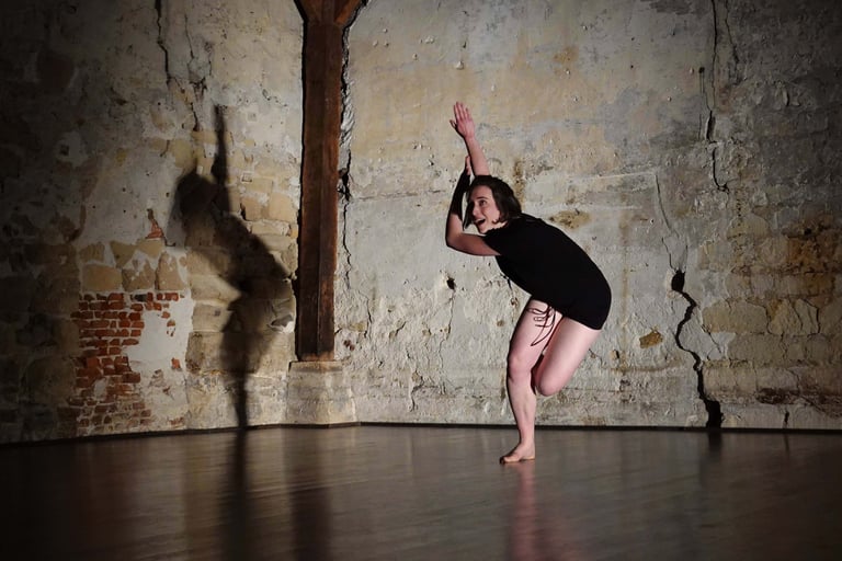 Entre les lignes est une pièce chorégraphique mêlant de manière ludique danse et documents, par l’exploration d’un ensemble d’ouvrages sur le spectacle vivant. Au plateau, deux danseuses-joueuses explorent, construisent et reconstruisent l’espace, jouent avec des figures de la danse et mettent en scène la fabrique de leur propre spectacle.